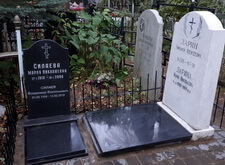 Затем почистили мраморный памятник, который стал на порядок светлее. Восстановили позеленевшую надпись. На гранитных памятниках выгравировали ещё по одной надписи (шрифт заказчик пожелал использовать самый обычный), покрасили ограждение. Так выглядит участок после всех проведённых работ.