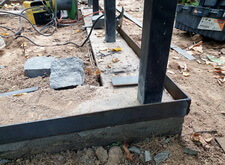 Параллельно с этим ведутся сварочные работы: к основанию оградки в стык к бетонному фундаменту привариваем борта для брусчатки.