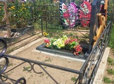Результат работы:ограда покрашена, брусчатка уложена, бетон закрыт гранитными плитами, в цветник посажены однолетние цветы, посажена многолетняя туя, перед памятником установлены две гранитные вазы, изображение и надпись на памятнике окрашены, что не только защищает гравировку от дождя и пыли, но и делает надписи яркими и четкими.