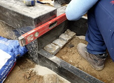 Когда раскопки были завершены, мы соорудили борта из гранита и саму ступеньку.
