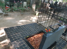На данном месте захоронения нам предстояло провести следующие работы: поставить на место покосившийся памятник и положить на территорию участка гранитную брусчатку.