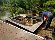 Укрываем место захоронения геотекстилем и приступаем к сборке и установке памятников.