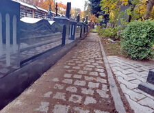 Последние фотографии отражают внешний вид участка после выполнения заказа: на территории места захоронения остался песок и пока что отсутствуют памятники. Перед тем, как окончательно завершить нашу работу, мы порекомендовали клиенту изредка обрабатывать мраморный крест специальным составом.