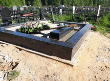 Так выглядит место захоронения после укладки установки памятника и укладки брусчатки
