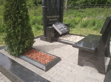 У подножья памятника клеим ранее изготовленную книгу, по обе стороны от неё укрепляем вазы. В расположенную в отдалении от надгробья клумбу сажаем тую.