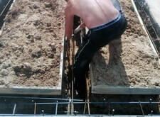 Исходное состояние:Стандартный ленточный фундамент по периметру участка, металлический крест и мраморная плита с надписью