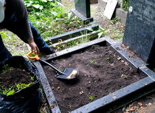 Закончив с первой могилой, мы приступили ко второму месту захоронения: засыпали новой землёй заранее прополотый цветник.