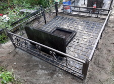 В ходе работы над данным заказом нам предстояло: переустановить покосившийся широкий памятник из чёрного гранита; покрасить обветшавшее от времени ограждение; обновить надписи на надгробье; установить прямоугольный цветник, а также выложить землю на участке гранитной брусчаткой. Приехав на место захоронения мы застали могилу в заброшенном состоянии: на всей её территории росла сорная трава, практически полностью скрывавшая памятник.